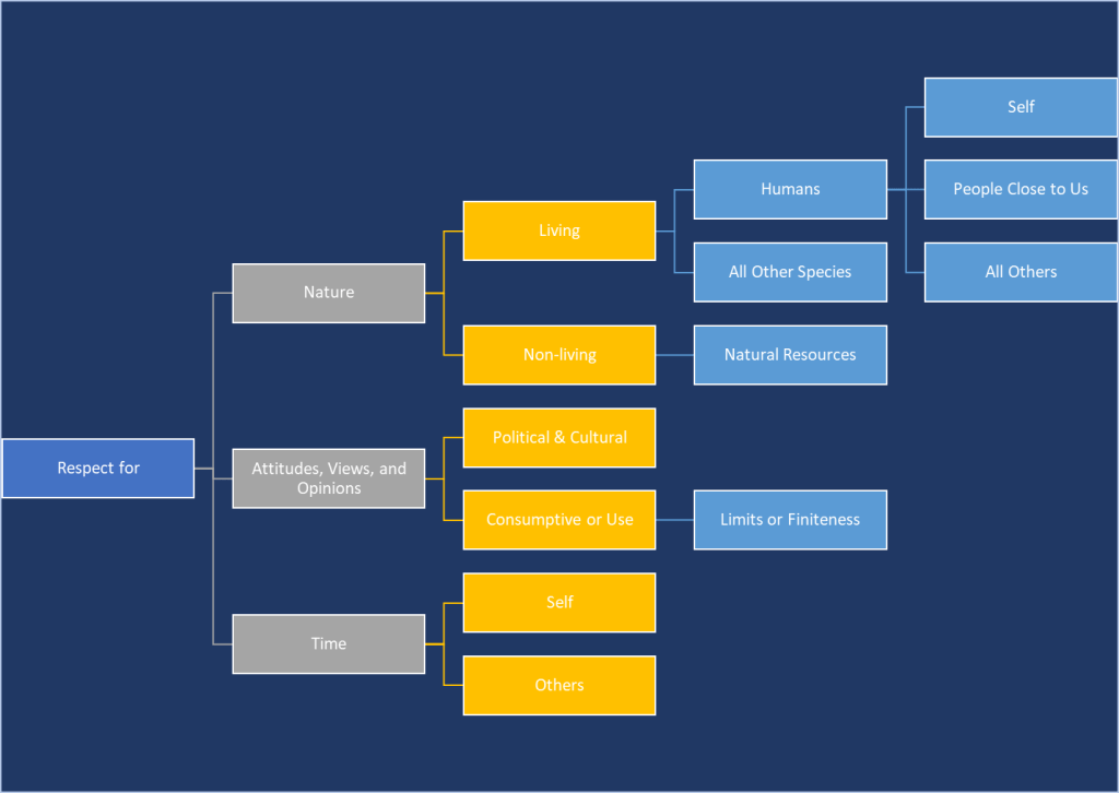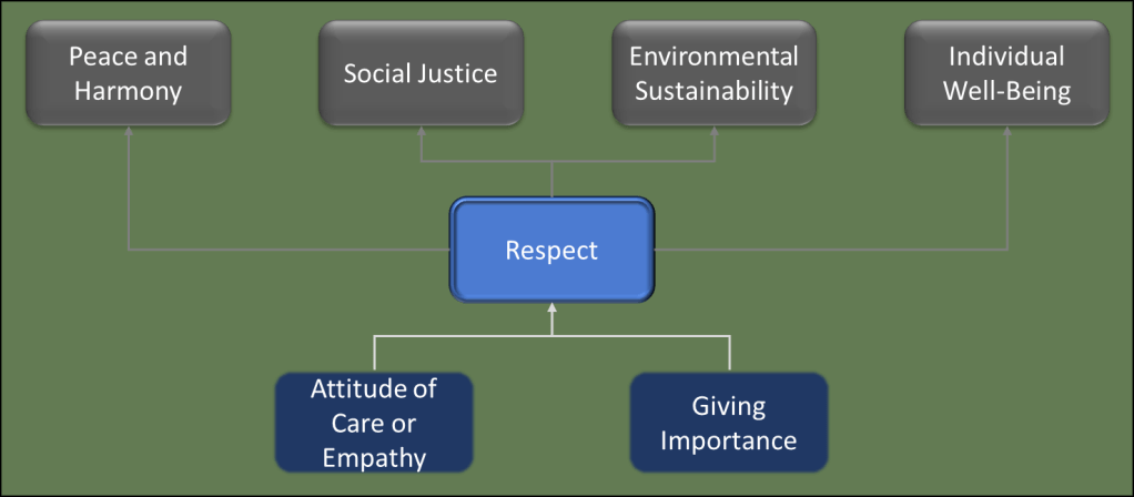 Surely there are other important behavioural attributes, both at individual and group level, that we need for more functional individuals, our society, and a more harmonious world. For instance, devoting adequate time and attention is a much-needed behavioural attribute to understand complex ecological and environmental issues of our times and in our so-called advance or developed societies, to learn about potential solutions, and even more so to convert existing knowledge and wisdom into action. But would we pay that attention if we do not have a good practice of respectful behaviour to start with? The centrality of developing respect as a central value seem important, even crucial, to develop a better human civilization that appreciates its powerful role in nature and makes a positive contribution to nature.